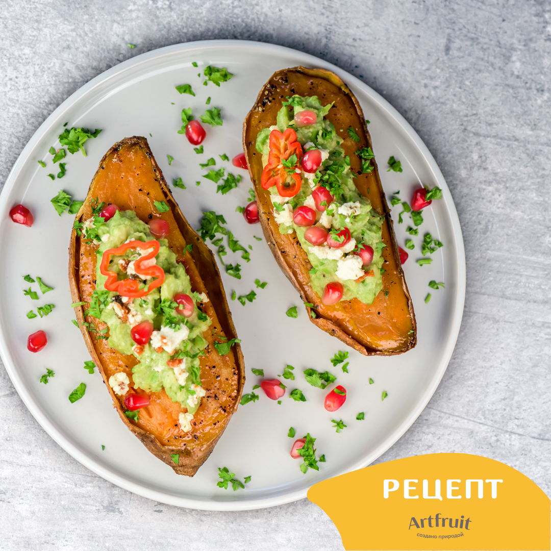 4️⃣ На запеченный батат выкладываем гуакамоле и