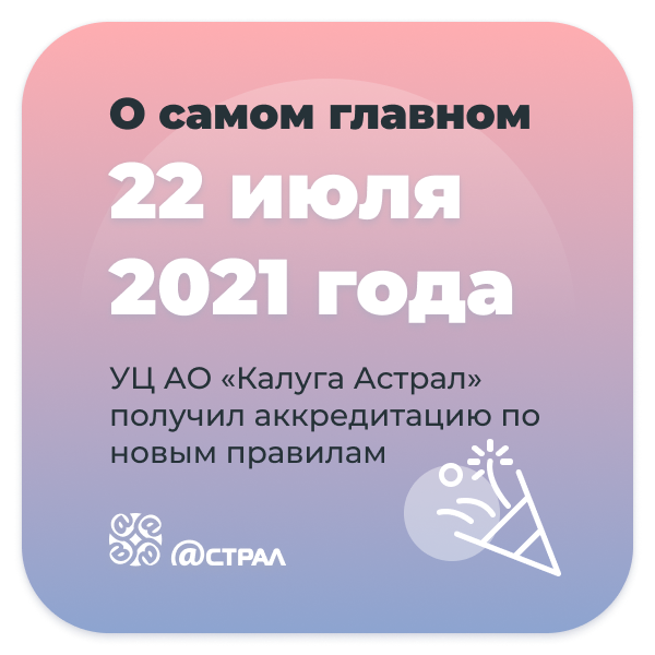 22 июля 2021 года Правительственная комиссия признала АО «Калуга Астрал» удостоверяющим центром, соответствующим новым требованиям Закона «Об электронной подписи». Мы возобновили выдачу сертификатов и ждем всех за ЭП для руководителей, сотрудников организаций и уполномоченных лиц. P.S. Бонус! Собрали выжимку по изменениям ЭП с 01.07.2021 года в карточки — сохраняйте, чтобы быть в курсе :) Подробнее о работе УЦ «Калуга Астрал» с 1 июля 2021 года