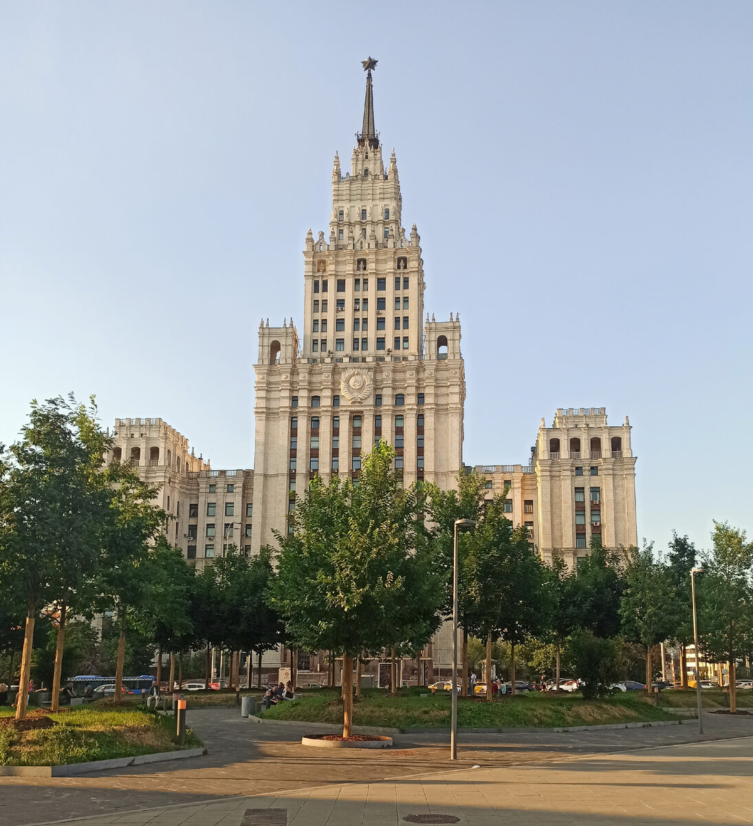 Здание построено в 1947-1953 годах. На первом этаже находится вестибюль станции метро «Красные Ворота».