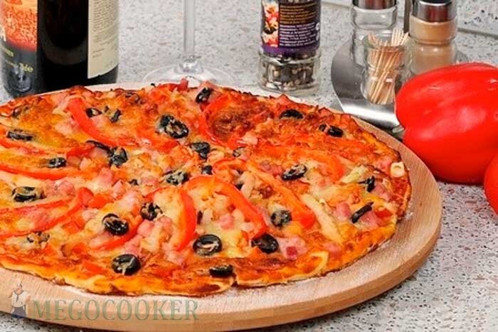 Пицца с копчёной курицей и ветчиной Пицца – это достаточно простое в приготовлении и очень вкусное повседневное блюдо. При этом вариантов начинки и теста для нее так много, что перечислять их можно невероятно долго. В этот раз давайте сделаем мясную пиццу с двумя разновидностями мяса. Приготовленная по этому рецепту пицца с копченой курицей с фото, будет невероятно ароматной и аппетитной! Ингредиенты: Для теста: Начинка: Томаты и свеженький перчик в начинке добавляют сочности, а мясные ингредиенты – сытности. К тому же располагается аппетитная начинка на тонком корже, который не отвлекает от неё и позволяет не переесть. Готовьте, пробуйте и наслаждайтесь изумительным вкусом этой пиццы с копченой курицей и ветчиной! Способ приготовления: Перед приготовлением пиццы подготовим все необходимые ингредиенты. Нам нужны: предварительно заготовленное тесто, томатная паста, ломтики ветчины, кусочки копчёной куриной грудки, томаты, сладкий перчик, луковица, чесночные дольки, маслины, моцарелла, т