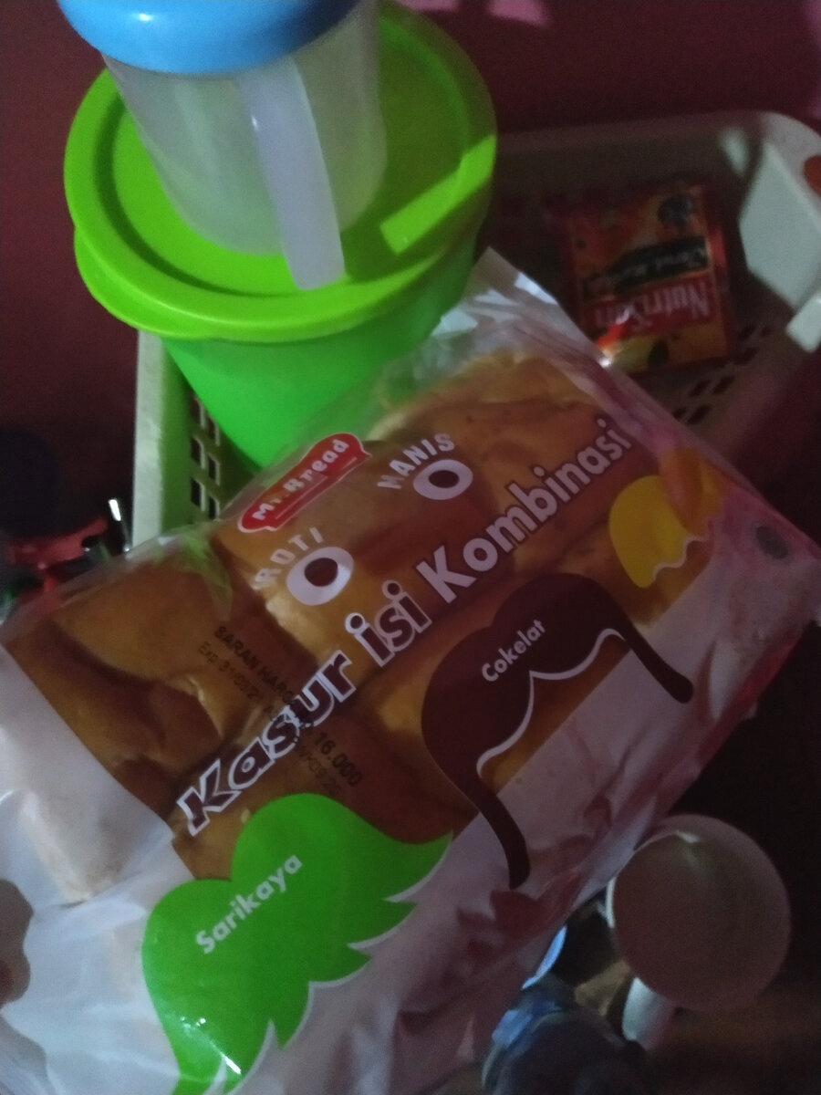 Итак, продолжаю обзор популярных и не очень товаров в наших магазинах. Про всякий хлеб и прочую выпечку я писала уже много, ссылки оставлю внизу для интересующихся. А сейчас обзор дорогого, но очень вкусного хлеба, который я беру только по акции "купи один, получи два". Такая акция бывает довольно часто в супермаркетах сети "Indomaret" на "усатые" булочки. Я их так называю из-за упаковки. В оригинале такая булочка называется "матрас". Она действительно на него похожа. Конкретно эта вот булочка состот из 6-ти частей: две с начинкой из крема сурикайя, две с шоколадной пастой и две с сырным кремом. Вкуснейшая вещь, но дорогая. Аж 80 российских рублей за штуку. Поэтому их беру, только когда их продают вот так: Купи одну, вторая бесплатно. А так бывает за пять дней до конца срока годности, указанного на упаковке. Надо сказать, остаётся их довольно много таких, с истекающим сроком. Поэтому иногда, когда вдруг у меня оказывается очень много денег, я покупаю аж два таких акционных двубулочья.