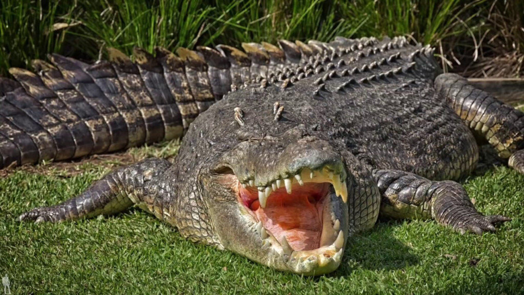 Крокодил — грозный хищник. Самый крупный представитель отряда — гребнистый крокодил — может превышать в длину шесть метров и весить более 900 килограмм. Другие крокодилы, конечно, поменьше, но все равно внушают страх своей мощью и острыми зубами. Большинство из них привязано к воде: они подолгу могут лежать в мутной реке, выставив на поверхность только ноздри и глаза. Стоит на берегу появиться антилопе или какому-нибудь другому животному, крокодил незаметно приближается к нему, а затем внезапно выпрыгивает и хватает жертву. Челюсти хищника, смыкаются подобно капкану, из которого практически невозможно вырваться. Рептилия разрывает плоть, вращаясь в воде вокруг своей оси, а потом заглатывает огромные куски мяса. Если крокодил один раз плотно поел, то может потом долгое время обходиться без еды. Разумеется, иногда добычей грозного хозяина вод становились и люди, хотя на протяжении веков они же ему поклонялись и даже приносили жертвы, причем в качестве подношения часто выступали враги или