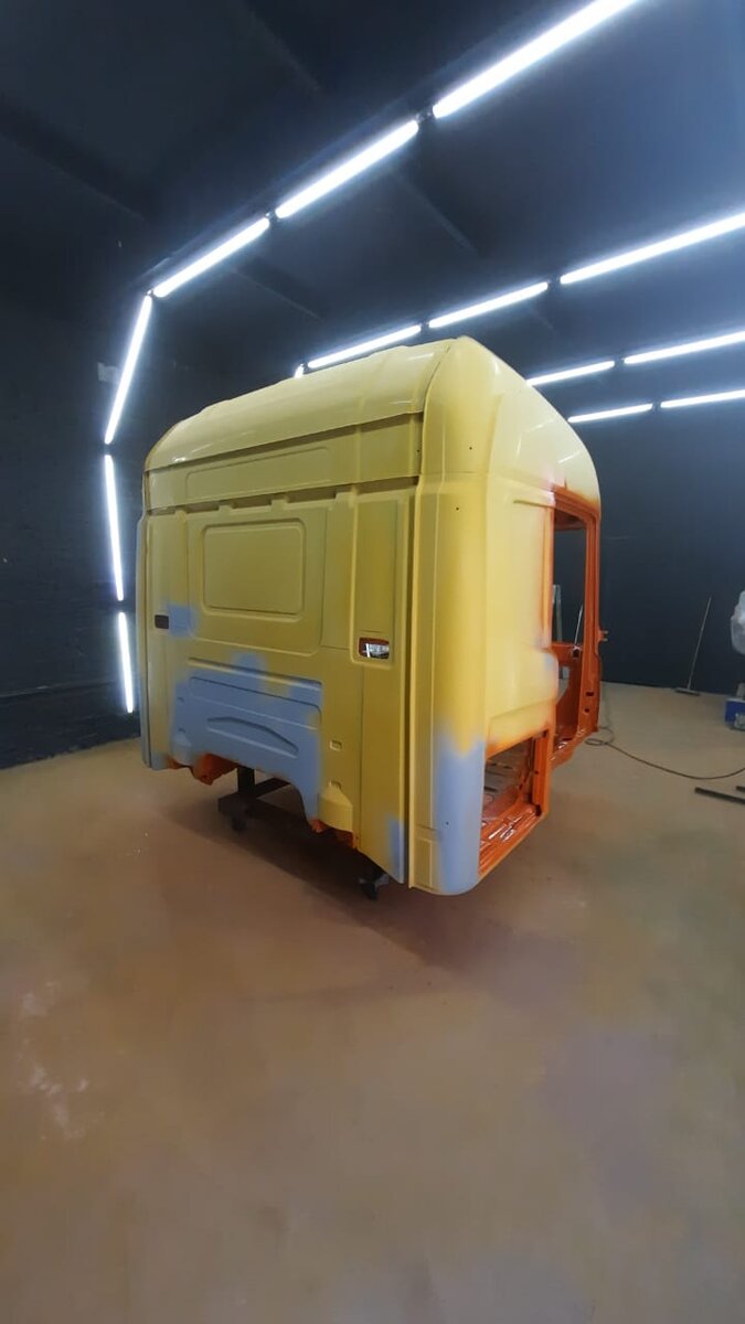 Покраска кабины в компании ВоркТрак достаточно обыденный процесс, ведь к нам обращаются в основном автомобили которые попали в ДТП. Клиенты зачастую приобретают у нас бу кабину в сборе для установки на шасси. Так почему же нужно красить ? спросите вы. Мы же отвечаем: Красить бу кабину необязательно, можно оставить и так но вот только не забывайте что б/у хоть и в сборе с рабочего тягача с Европы и свежие относительно машины, но уже походившие по дорогам Евросоюза, где то на краске есть тычки от камней, где то из за эксплуатации в портах Голандии проступает ржавчинка, не говорим уж про то что солнце не щадит никого и краска попросту со временем выцветает, а ещё если обратить внимание на разные материалы под краской то становиться понятно что на пластике и стеклопластике цвет становиться другим не желе на металлической поверхности. Согласитесь, когда вы восстанавливаете автомобиль стоимостью в от 3,5 до 7 млн и тратите на ремонт от 1 млн до 3 млн получая при этом кабину на шасси которая