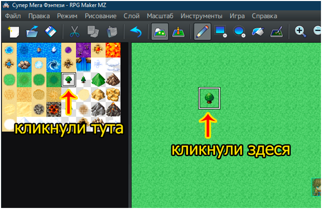 Давайте уже чего-нибудь хоть сделаем, а то скучно стало! Например, попробуем поработать с графикой. Для тех, кому лениво читать и больше нравится смотреть - запилено видео: https://youtu.be/LI9w4ZrVjyw Процесс создания карт в мейкере называется – маппингом Графику использовать элементарно, просто кликаем на понравившийся тайл левой кнопкой мыши, а потом левой же кнопкой мыши кликаем в нужном месте на локации и тайл туда перенесен. Делов-то на копейку! Тайл – в мейкере элемент графики. Может быть как одноклеточным, так и многоклеточным. Если нам нужно перенести тайл, размером больше одной клетки, то при его выборе в левой части зажимаем ЛКМ, выделяем и затем уже одним кликом переносим на локацию. В Панели Инструментов у нас имеются пять инструментов для рисования тайлами: Карандаш – ставит одиночные тайлы по клику, или рисует ими по принципу «как рука взяла» при удерживании ЛКМ. Прямоугольник – заполняет тайлами прямоугольную область, либо рисует прямые линии. Работает с удержанием ЛКМ.