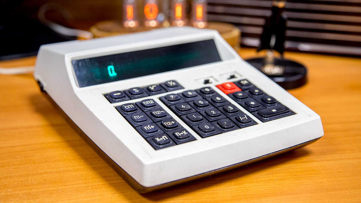 Попал ко мне в руки вот такой "микрокалькулятор", приставка "Микро" как то слабо вяжется с его размерами и весом в один килограмм. Несмотря на возраст агрегат вполне рабочий и без замечаний справляется со своим назначением. Яркий представитель советской радиоэлектронной промышленности - неказистый с виду, но простой и надежный. Результаты вычислений отображаются на двенадцатиразрядном вакуумно-люминесцентном индикаторе, приятного зеленоватого свечения. Микрокалькуляторы МК44 с 1981 по середину 90-х годов, выпускались на двух заводах: заводе "Электронприбор" во Фрязино и в Дагестане на заводе"Эльтав". Предназначались для простых математических расчетов, они были рабочими лошадками бухгалтерий и статистических отделов. Данный образец выпущен на излете СССР, в августе 1990 года, на Фрязинском заводе имени 50-летия СССР. Цена изделия составляла целых 120 рублей. Калькулятор выполняет четыре арифметических действия, извлекает квадратный корень и считает проценты, а так же имеет три регистр