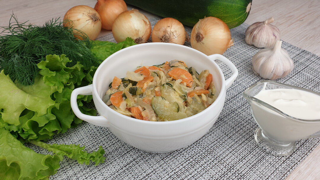 Тушеные кабачки в сметане. Вкусные кабачки со сметаной и чесноком. Готовим кабачки быстро и вкусно.