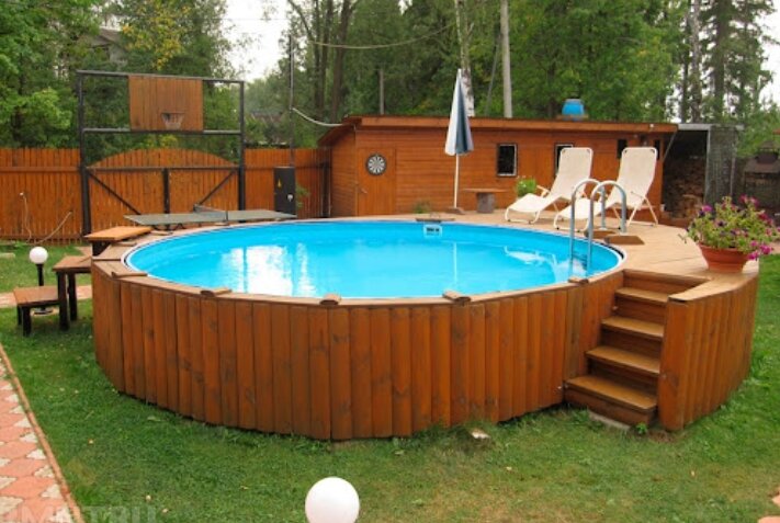 Из самого названия можно прийти к выводу, что основанием каркасного бассейна является каркас. Примечательно, что он является очень прочным, поскольку собран из металлических труб. Еще одним важным элементом конструкции является наличие нескольких слоев из качественного ПВХ, которые образуют чашу. Чаще всего производители помещают три слоя, но в зависимости от разных факторов в некоторых случаях и может быть больше. ПВХ содержит в себе капроновую сетку, поэтому деформации бассейна категорически исключены. Сама по себе чаша получает сравнительно немного нагрузки, так как наибольший объем давления оказывается на металлический каркас. Если речь идет о габаритной модели, то она, скорее всего, имеет металлические подпорки. Однако они встречаются довольно редко, поскольку чаще всего каркасные водоемы используются для дач, где пространство ограниченное. Отечественный рынок может предложить нам два вида каркасных бассейнов – морозостойкие и сезонные. Первый вариант является наиболее распростра