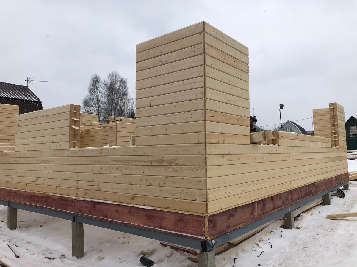 Начало строительства стен первого этажа от компании "Теремъ" + привезли еще брус