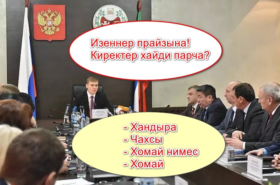 Хакасский язык для губернатора, министра, депутата, служащего и всех, кто желает его знать по зову сердца Мы продолжаем давать очень короткие и не требующие объёмных затрат по времени посты о хакасском языке. Первый наш пост был посвящён теме приветствия: изеннер прайзына! Вы, губернатор республики, министр, депутат или иной любой кто, вошли в зал заседания и поприветствовали коллег: изеннер прайзына. Далее можете продолжить речь следующим образом: киректер хайди парча? Смысловое назначение этой хакасской фразы аналогичен в русском языке словосочетанию "как дела". На вопрос "киректер хайди парча" (как дела) есть варианты ответа: Итак, повторим пройденное и запишем диалог в следующем виде: Рекомендации по изучению хакасских фраз. 1. Загрузите приложение яндекс-дзен в телефоне и подпишитесь на данный канал (кстати, настоятельно порекомендуйте своим коллегам). 2. Специального времени для изучения хакасских фраз вам уделять не нужно. Читайте посты канала в процессе курительных действий