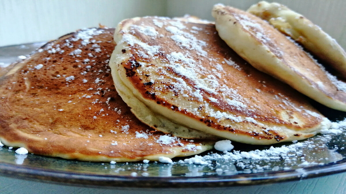 Пышные оладьи на кефире, румяные это и вкусный завтрак на всю семью, и замечательное угощение к чаю для внезапных гостей. В кефирное тесто для оладьев часто добавляют соду и иногда подогревают яично-кефирную смесь, перед тем как добавить муку. Греть при этом нужно осторожно, чтобы не свернулись сырые яйца. Сегодня оладьи будем готовить без яиц. **Рецепт** Кефир 450мл Сахар ванильный 1чай.л Мука 6ст.л с горкой Сода 1ч.л. Сахар песок 4ч.л Соль по вкусу * Посмотрите ВИДЕО ЭТОГО РЕЦЕПТА на моем YouTube канале "Игра вкусов" * Подписывайтесь!!! https://www.youtube.com/channel/UC-2-5_LEQ0f8H0O-u3Y5hvA?view_as=subscriber Впереди вас ждет много рецептов Подготовить все ингредиенты для приготовления. В глубокую миску выливаем кефир жирностью 3.2% добавляем ванильный сахар, соль, одну чайную ложку соды, хорошо перемешиваем и оставляем на 10минут. Далее добавляем муку и регулируем по консистенции. Готовим оладьи, на сковоро