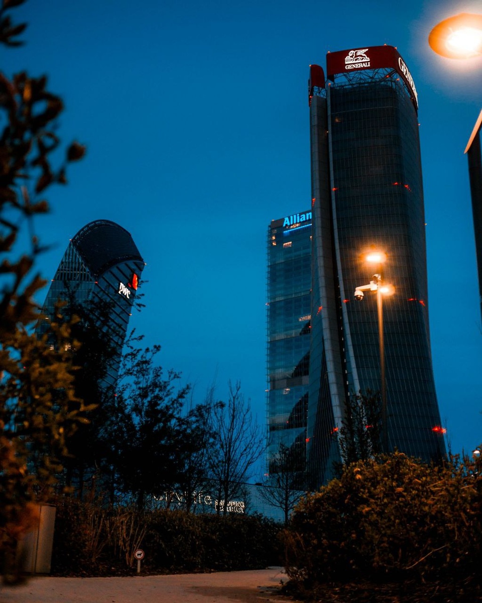CityLife - новый район в Милане, где сосредоточены прогрессивные строительные проекты. Доминируют три башни, спроектированные самыми именитыми архитектурными бюро мира - Generli Tower от Zaha Hadid, il Curvo от Libeskind и Allianz Tower от Arata Isozaki. Высота всех башен около 200 метров.
