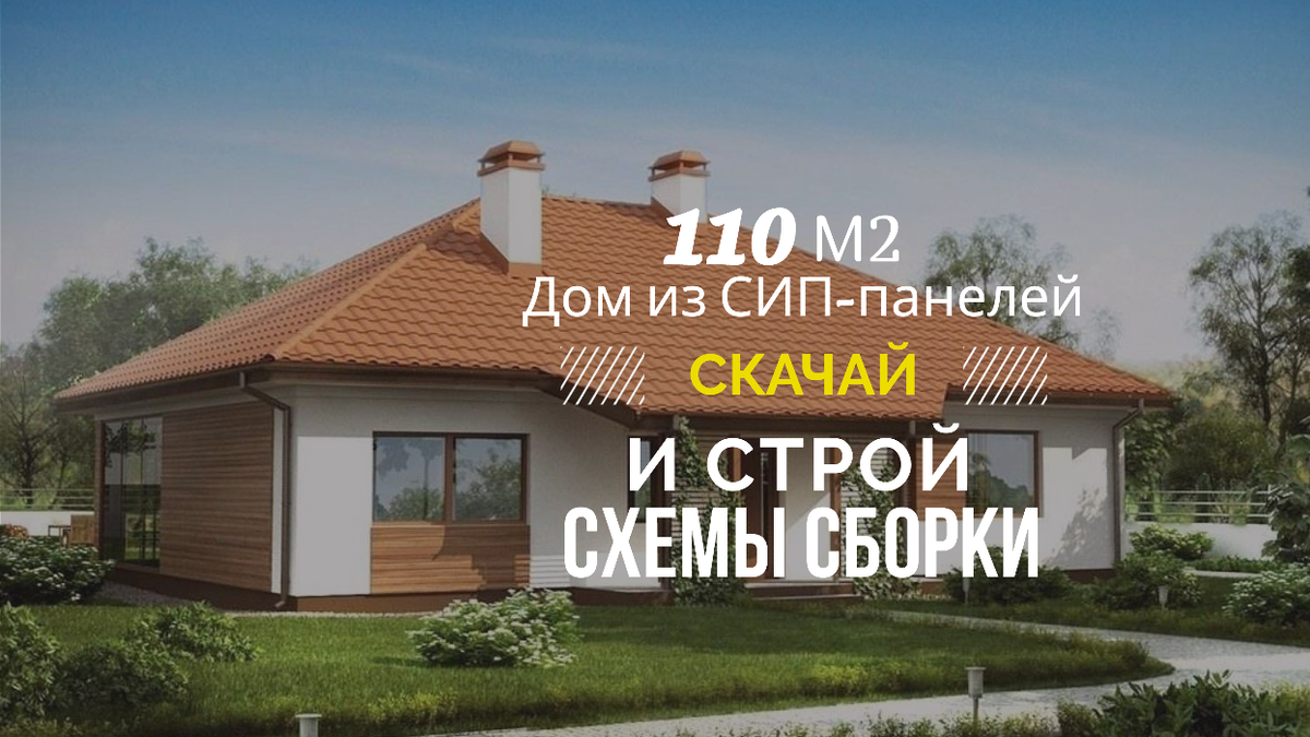 Все привет! На этой неделе был сделан новенький проект для одного из заказчиков и вот пришло время поделиться с вами схемами по его сборке. Проектом предусмотрены стены из сип-панелей ЦСП, как ни странно, но они сейчас дешевле чем из ОСП плиты, а плюсов имеют гораздо больше. Внутренние стены из деревянного каркаса для монтажа в них акустического утеплителя и потом плит вГКЛ. Полезная площадь проекта 110м2, тут у нас уместилось три спальни, ванная, отдельный с/у, котельная, большая гостиная с выходом на большую пати зону и на маленькую веранду остекленную веранду (зимний сад), кладовая и мечта любой хозяйки большая кухня. Скачать проект одноэтажного дома сип-панелей можно по ссылке В данной статье представлен мини проект по сборке стен. Если Вас интересует полная версия проекта с фундаментом, перекрытиями и стропильной системой, а также инструкция по сборке, ссылка для связи с автором ниже. Если вас интересует свой проект, пришлите его мне, схемы стен из каркаса или сип-панелей, всегда