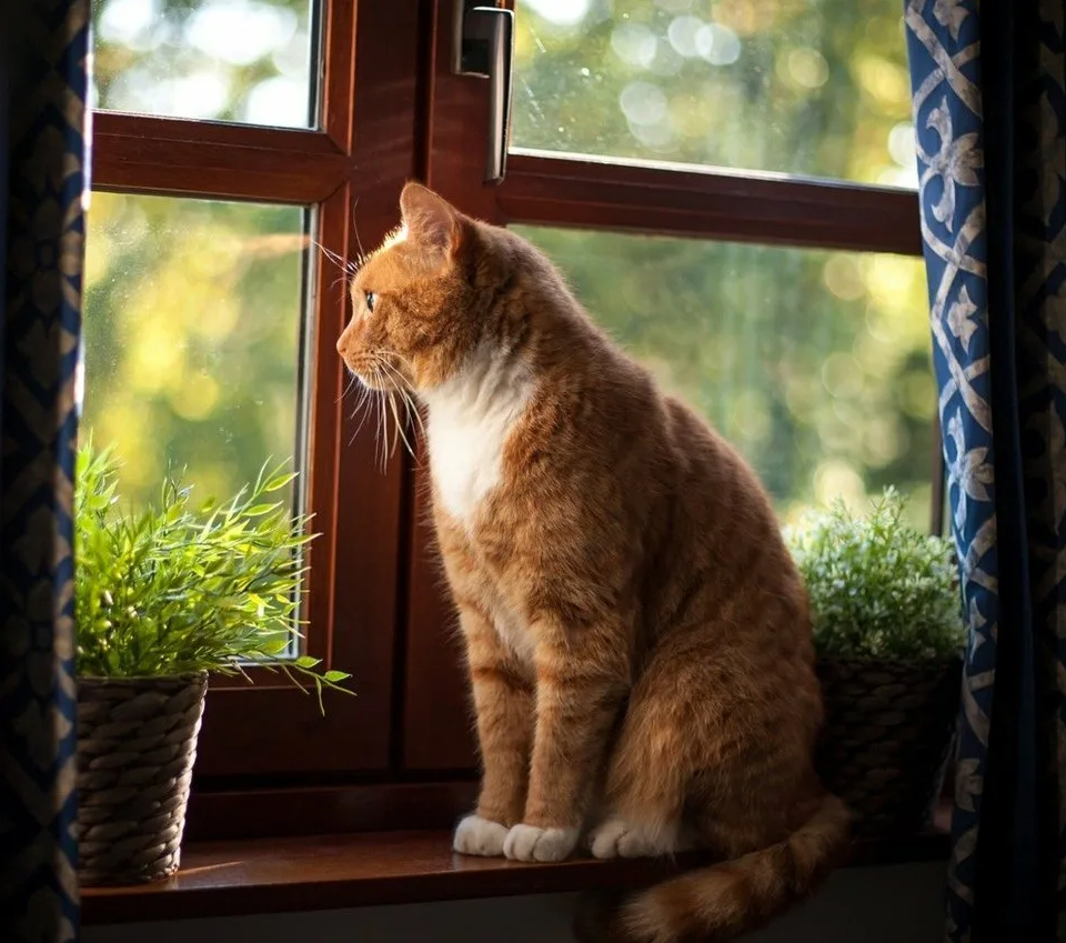 5 причин почему домашние кошки любят сидеть на подоконнике.