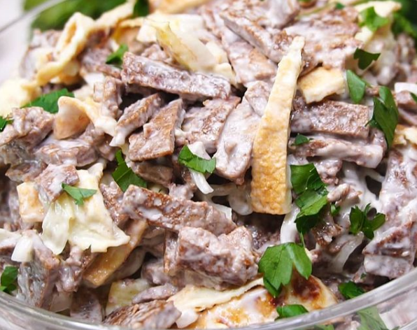 Очень вкусный и полезный печёночный салатик разнообразит ваш праздничный стол, готовится из доступных продуктов. Нам понадобится: Печень (любая) - 300 гр Лук репчатый - 2-3 шт Яйца - 4 шт Соевый соус - 3-4 ст.л. Майонез Приготовление: Печень режем тонкими длинными полосками и обжариваем. Потом обжариваем лук (отдельно от печени), в него добавляем соевый соус в процессе жарки. Выкладываем в салатник. Яйца по одному взбиваем и выпекаем яичные блинчики, когда остынут нарезаем соломкой, добавляем к печени и луку, заправляем майонезом. Печеночный салатик готов! Приятного аппетита! Подписывайтесь на мой канал, ставьте лайки