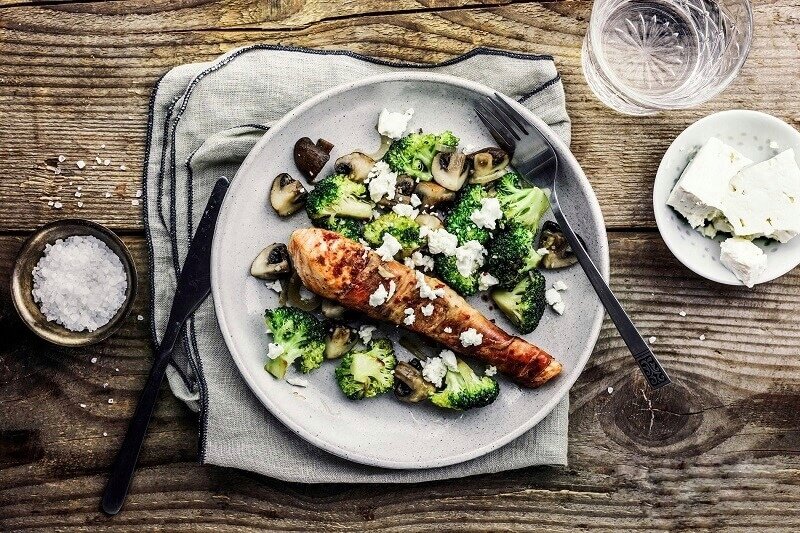 5 Брокколи, грибы и лук нарежьте, по вкусу приправьте солью и перцем и обжарьте.