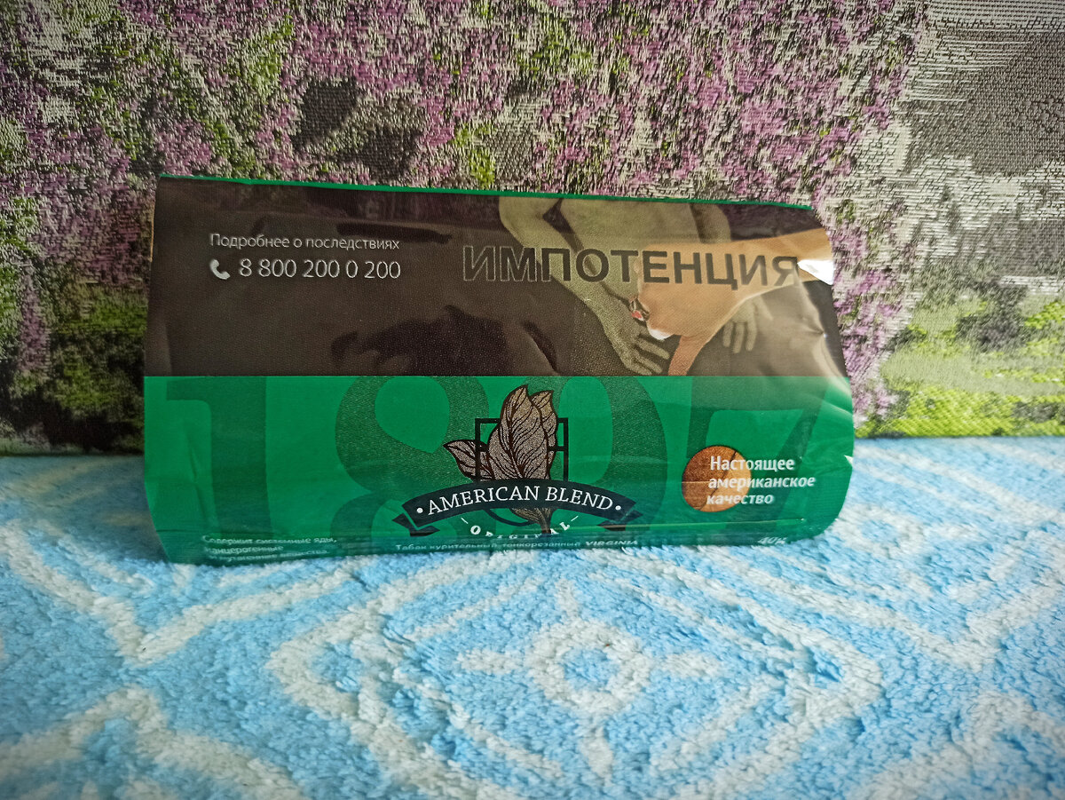 Всем доброго времени суток. Люблю я самокруточные табаки, поэтому не мог пройти мимо такого экземпляра. Интересен он тем, что произведен в России и на кисете отсутствует акцизная марка. Соответственно, это какой-то полулегальный табак. Впервые с таким сталкиваюсь. Называется он "American Blend". И вот тут, видимо, совсем не было идей, как назвать свой табак. Более того, мешка не соответствует названию - это обычная вирджиния, а никакой АБ. Имейте это в виду, а то меня ввело в заблуждение такое название. Ну, и без громких лозунгов не обошлось - "Настоящее американское качество". В кисете находится 40 грамм табака. Встретить его можно в табачных магазинах, но конечно он не шибко распространен. Цена - 320 рублей примерно. Но это не значит, что вы найдете его за те же деньги, это же табак, а не сигареты с МРЦ. Штрих-код как видите российский. Вообще в плане дизайна заметен явный закос под известный табак Golden Virginia (у тех ребят, к слову, название марки соответствует наполнению). Адрес