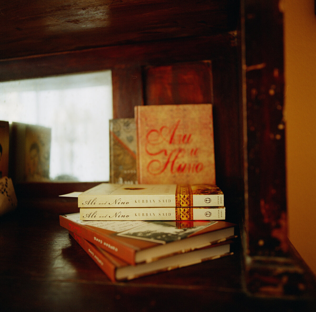 Направляемся на Торговую улицу, где расположена штаб-квартира Нигяр – недавно открытое кафе «Али и Нино», оформленное как предполагаемый дом героев. Напротив два одноименных книжных магазина, детский и взрослый. Стены кафе украшены портретами важных пышноусых генералов и кокетливых дам в шляпках. В шкафу на входе четыре или пять изданий романа, среди них с гордостью нахожу свое.
