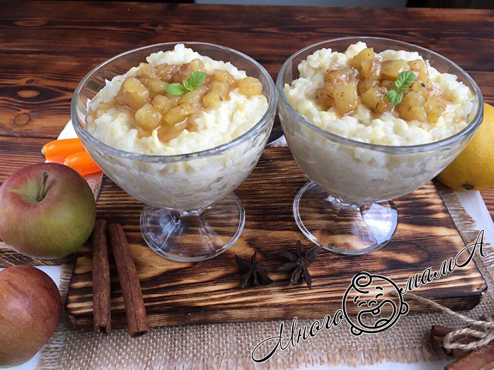 На отдыхе мы снимали квартиру, в которой не оказалось духовки, и мне пришлось освоить новые способы приготовления. Один из них - это рецепт вкуснейшего рисового пудинга, который готовится в микроволновке. Он сладкий, но не приторный, и в него можно добавлять любые фрукты, которые найдутся дома. А еще он очень быстро готовится, не придется торчать на кухне часами. Ингредиенты для десерта, думаю, есть в каждом доме: Рис нужно хорошо промыть под краном, чтобы вода стала прозрачной. Обычно я делаю это не менее 6 раз. Затем тщательно мою яблоки. Чистый, подсохший рис высыпаю в посуду, подходящую для микроволновой печи. Это может быть специальный пластиковый контейнер или миска из жаропрочного стекла. Заливаю крупу холодной водой и ставлю в микроволновку на 10-12 минут. Если за это время жидкость не испарилась, держу еще несколько минут. Не пугайтесь, что рис в готовом блюде получится недоваренным, он дойдёт позже. В горячий рис добавляю сливочное масло и перемешиваю, пока оно не растворит
