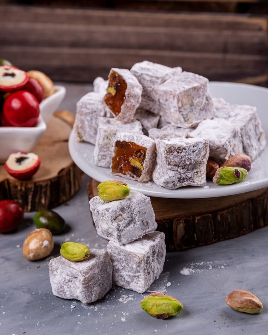 Совсем недавно я нежилась на пляже, где попробовала разновидности рахат-лукума. И сегодня я хочу вместе с вами о нем поговорить. Погнали!! Содержание: Рахат-лукум – это не только изысканный десерт, доставляющий истинное наслаждение настоящим сластенам, но и полезная сладость, употребление которой поднимает настроение и улучшает самочувствие. По-турецки «рахат» означает удовольствие от вкушения, а «локом» – кусочки десерта. История же самой сладости – долгая и удивительная. Это один из самых старых десертов и его знали во дворцах турецких правителей уже несколько сотен лет назад. Само же происхождение рахат-лукума овеяно легендами, и есть несколько наиболее популярных историй, связанных с этим деликатесом. Одна из легенд гласит следующее. Давным-давно жил один султан, который свято верил в то, что путь к сердцу женщины лежит через желудок, и эта вера проложила ему путь к немалому количеству женских сердец. В качестве основного победоносного оружия для покорения женщин у этого султана вс