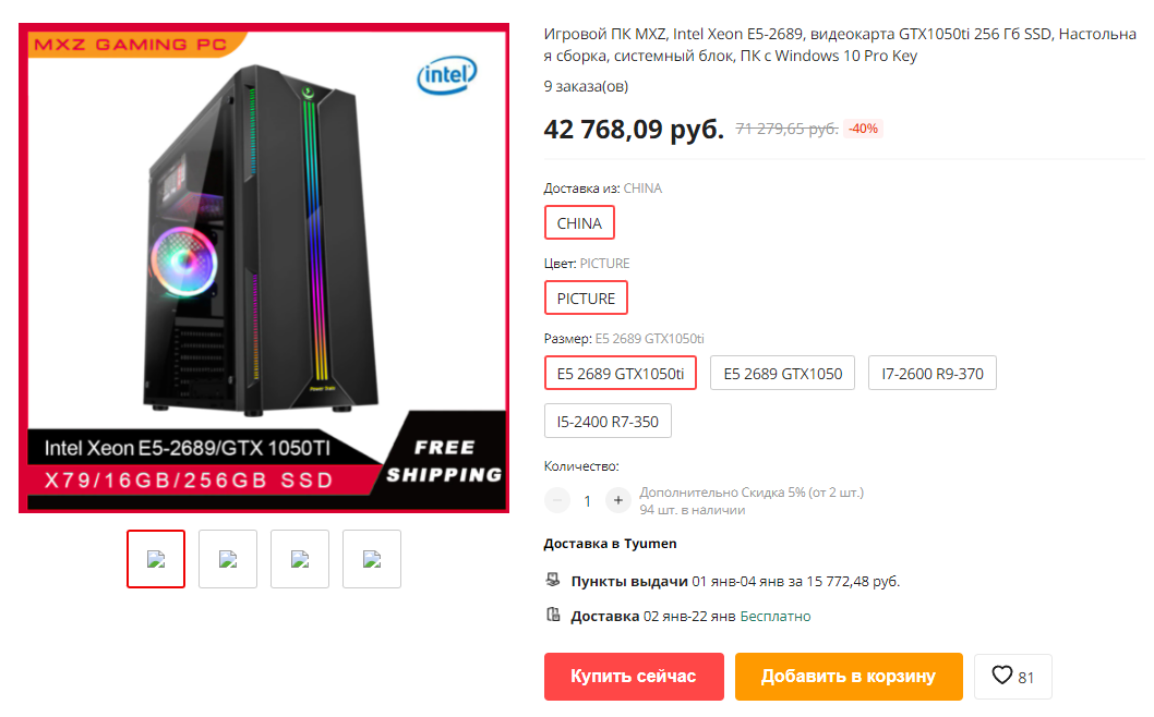 Всем привет, дорогие друзья. Рад вас видеть! Алиэкспресс выручает нас довольно часто, однако не все товары там стоит покупать. Как оказалось, "барыги" существуют везде, и сборки ПК с алиэкспресс - тому подтверждение. В прочем, как и везде, существуют адекватные продавцы, которые не смотря ни на что делают годноту. Я нашел несколько абсолютно случайных сборок на алиэкспрессе, которыми сегодня с вами поделюсь. Поехали! Неплохой зеон, внушительная видеокарта Первая же сборка, которая мне попалась, НА МОЙ СУБЪЕКТИВНЫЙ ВЗГЛЯД оказалась вполне годной: Ну вы только посмотрите: нам отдают 8-ядерный Xeon E5 2689 в паре с... GTX 1050 Ti. Разумеется, сборка не из нового железа, да и все остальное - преимущественно Китай и ноу-нейм (особенно страшно за блок питания), однако относительно своих характеристик сборка неплоха. Опять же - посмотрим на авито и увидим вот такую картину: Ну вот и что тут сказать, если одна видеокарта тут стоит 20К? Причем, как и в случае со сборкой из Китая - непонятная, Б