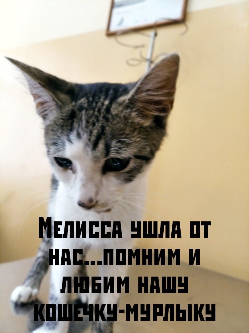 Наша маленькая кошечка-Мелиссочка, наша девочка-страдалица, которая так боролась и старалась победить болезнь и смерть, которая столько времени дарила нам надежду и радовала каждый день улучшениями, что даже сомнений не было в ее выздоровлении. День назад в 13.00 должны были выписаться уже! Но! Очень неожиданно и резко ей стало плохо. Буквально за день она ушла от нас. Мы были уже бессильны что-либо предпринять. И вот через день Юлия Ч. в 13.00 забрала Мелиску, но только не так, как хотелось и как мы надеялись ее забрать... Очень тяжело и больно что-то ещё говорить💔💔💔 Прости нас, наша девочка, если что-то не так сделали. Или не сделали. Но мы очень старались и использовали все возможности, хоть их было и не так много. Болели за нее всем сердцем. Мы думаем, что она это знает. И это самое главное. К сожалению, не все в наших руках. Есть болезнь, которую она не смогла побороть и есть то, над чем мы не властны. Мягких облачков нашей девочке и ее братику🐾🐾🐾🐾🐾🐾🐾🐾 Ещё очень хочу по