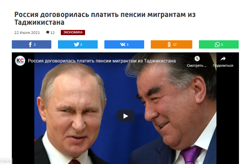 Ура товарищи, Россия наконец-то решила проблему низких пенсий нашим старикам и теперь мы можем помочь "братьям" таджикам. На днях меня кинуло в холодный пот, когда я прочитал заголовок новости о том, что теперь Россия будет платить пенсии трудовым мигрантам из Таджикистана, также сообщается, что вслед за таджиками пенсии из российской казны будут получать другие мигранты из соседних стран – узбеки, киргизы и граждане Казахстана. Даже трудно понять, с какой стороны начать анализировать данную ситуацию, настолько меня это "выбило из колеи".