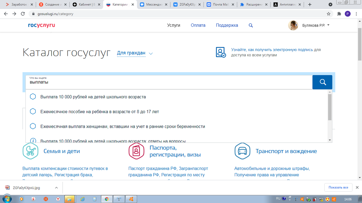 Для оформления данной услуги, у Вас должна быть подтвержденная учетная запись на Госуслугах. Желательно зайти через компьютер или ноутбук. Если заходите через телефон использовать браузер(Google, Яндекс и т.д) Инструкция по заполнению заявления: 1. Заходим на сайт Госуслуги набираем логин и пароль. (Логином будет Ваш номер СНИЛС, адрес электронный почты, номер мобильного телефона(тот на который вы регистрировали личный кабинет). Если Вы поменяли номер мобильного телефона, а пароль забыли от госуслуг - в этом случае нужно будет обратиться в Многофункциональный центр МОИ ДОКУМЕНТЫ 2. В поисковике набираем Выплаты 10 000 рублей на детей школьного возраста 3. Заполняем в открывшемся окне анкету (Если информация заполнена проверяем правильность). Пишем всех детей, кто имеет право на получение выплаты. Пользуемся кнопкой добавить ребенка 4. Нужно обратить внимание на "номер записи акта о рождении и дата записи акта". Многие в этой графе заполняют Серию и номер свидетельства о рождении и да