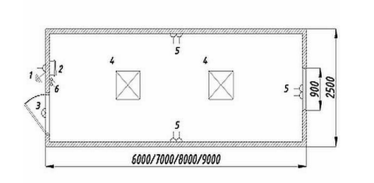 Если постройка будет постоянно стоять на одном месте, размеры можно взять за основу. Когда бытовку предусмотрено перевозить, ширину уменьшите до 2,4-2,5 м. Длину ограничьте 6 м. Этих стандартов придерживаются многие производители из-за удобства транспортировки домиков манипулятором.