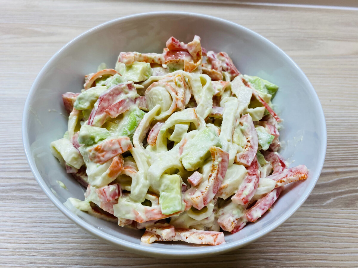 Салат на скорую руку из крабовых палочек. Ещё проще, ещё вкуснее.