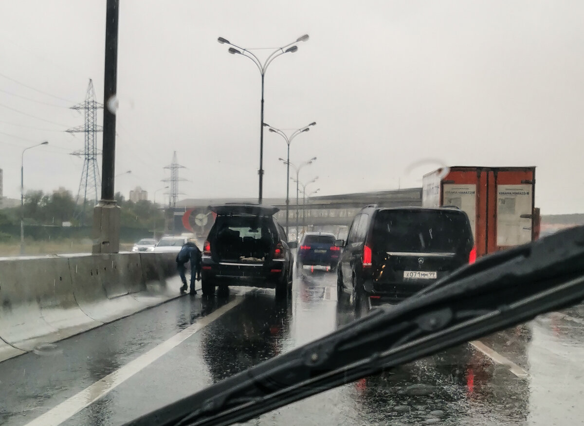 Это может случиться с каждым - внезапно вы поняли, что колесо автомобиля спустило. Хорошо, если это заднее колесо, а о проблеме подсказала встроенная в автомобиль система контроля давления в шинах. Но иногда водитель слишком поздно понимает, что колесо спускает, и едет, пока оно не спустит полностью. Что, наконец, проявит себя вибрацией и уводами. Водитель на этой фотографии сделал максимально неправильный выбор в этой ситуации - остановился в левом ряду МКАД, достал балонник, и начал менять колесо, даже не выставив знак аварийной остановки! Вместе с тем, такое поведение смертельно опасно - как для этого водителя, так и для других участников движения. МКАД - одна из самых аварийных трасс в стране, и значительная часть аварий на ней случается в связи с остановками транспорта в случае поломок или ДТП, либо работой спецтехники как раз в левом ряду! На МКАД приходится 25% всех московских ДТП со смертельным исходом. 61% ДТП это столкновения, 20% - наезды на стоящие автомобили. Водителей