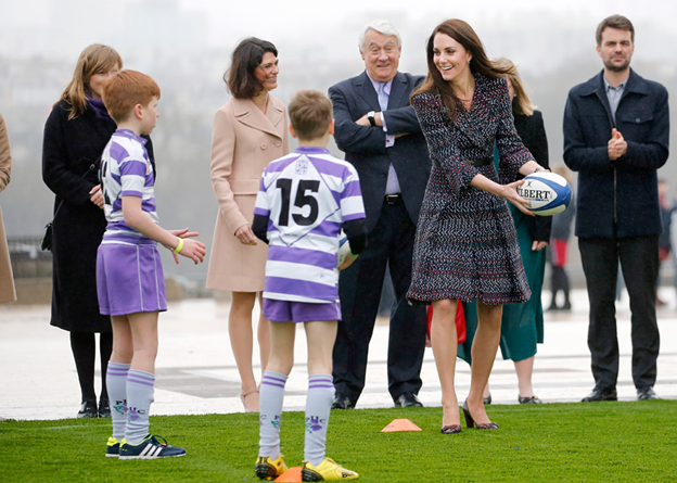 Говорят, что любовь к спорту позволяет герцогине Кембриджской не беспокоится о своей великолепной фигуре. Бывший игрок университетской команды по хоккею на траве, не боится экспериментировать смело пробуя новые спортивные дисциплины, от (игры аристократов) большого тенниса до стрельбы из лука. Теперь, Кейт придётся добавить к списку своих увлечений, ещё один вид спорта давнюю семейную страсть – регби. «- В нашей семье у регби, всегда был особый, культовый статус. Мы старались не пропускать игры сборной, а уж если она проигрывала, то папа был в таком отчаянии будто сам был виновником этого поражения» - утверждала в интервью журналу «Vanity Fair» сестра Кейт, Пиппа. В минувшие выходные газета «Sunday Times» уведомила своих читателей о том, что герцогиня Кембриджская приняла под своё покровительство «Регбийный союз Англии» и «Премьер – лигу» ответственную за проведение чемпионата по регби, ранее поддержкой этих организаций занимался принц Гарри. По мнению журналистов «Times», новый пост К