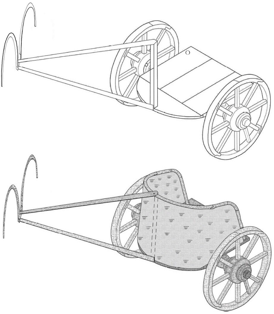 - Итак, при реконструкции колесницы отсутствуют данные для восстановления дышла и кузова вообще. В таком случае возникает вопрос о принципиальной возможности и, главное, научной обоснованности и достоверности какой-либо реконструкции.