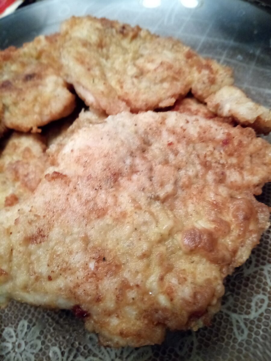 Так назвал его мой сын :) А вообще, это куриные отбивные, которые не требуют особых кулинарных навыков, быстро готовятся и так же быстро съедаются. Итак, берём 1 кг куриного филе, соль, перец, приправу для курицы (я беру либо "Магги", либо "Спайс Мастер" из "Светофора"). Куриное филе нужно распластать вдоль на порционные кусочки. Если филе крупное, то из него получится три-четыре отбивные. Кусочки филе отбить с двух сторон молоточком, посолить, поперчить, натереть приправой. Взбить в глубокой тарелке 3 йца, в другую тарелку насыпать муки для обваливания. Каждый кусочек обмакнуть с двух сторон в яйцах, затем в муке и отправить на разогретую с маслом сковороду. Жарить до румяной корочки с двух сторон примерно по 2-3 минуты на среднем огне. Приятного аппетита!