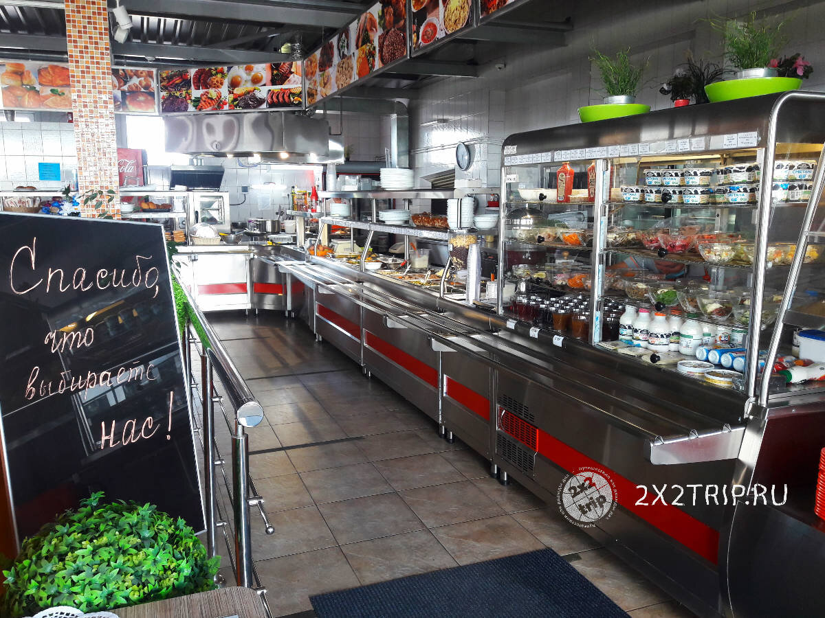 У всех автопутешественников возникают несколько основных вопросов, касающихся дороги: качество асфальта на трассе, количество гаишников и камер, где поесть и где поспать. На вопрос качества и трафика на трассах от Новосибирска до Дагестана я уже писала здесь, а сейчас хочу рассказать об одной из самых лучших столовых, где мы останавливались на обед. К сожалению, далеко не все столовые, кафе на дорогах могут похвастаться вкусной едой и вменяемыми ценами. Автопутешественники с опытом на новых маршрутах всегда стараются ориентироваться по дальнобойщиком. Они знают наверняка, где вкусно и не дорого, а в идеале, еще чисто и уютно. В этот раз, как назло, большегрузов на дороге было мало, а есть уже хотелось сильно и мы отчитав половину пути стали присматривать кафе вдоль дороги. Пришлось проехать еще около 50 километров, прежде чем мы увидели приличное здание с надписью "Кафе". Перед входом еще две машины и только один большегруз. В помещении приятная прохлада, очень чисто и интерьер с п