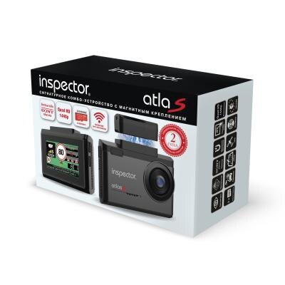INSPECTOR AtlaS – это революционное комбо-устройство последнего поколения, включающее в себя большое количество инноваций. Высокопроизводительный процессор Ambarella А12 работает в паре со светочувствительным сенсором SONY Starvis IMX для наилучшего качества ночной съемки. Сигнатурная технология предназначена для снижения количества ложных оповещений в К-диапазоне с помощью распознавания сигналов радаров и сопоставления их с заложенной в память устройства обновляемой библиотекой сигнатур. Экран диагональю 3" выполнен по технологии IPS (изображение остается читаемым даже при ярком солнечном свете), а тач-сенсор - по емкостной технологии, применяемой в экранах современных смартфонов. Поворотное на 360° градусов магнитное крепление с активным питанием, кабель питания подключается к креплению без необходимости его отключения. В магнитное крепление впервые встроено сразу три системы глобального позиционирования: GPS + GLONASS + GALILEO, что позволяет сократить до минимума время на поиск с