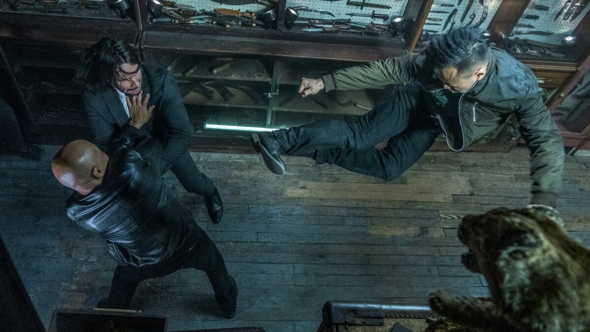 В третьей части "Джона Уика" главный герой сражается против своих врагов, метая в них ножи, они ему отвечают тем же. Конечно же на съемках ножи были резиновыми, но чтобы достоверно исполнить свою роль, Киану Ривз решил научиться метать настоящие ножи. Получилось у него это достаточно неплохо, ведь результат его работы был продемонстрирован в фильме. Зрелищности этой сцене придает также и то, что не все ножи попадали в цель. Сделано это было для большей реалистичности.