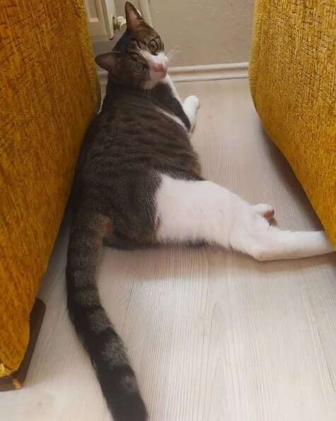 Впрочем, дома не лучше. Дома, даже при всех открытых окнах, от жары вянет даже петрушка в холодильнике. Сосис (котяра с фото) томно развалился на полу, пытаясь охладить тушку.
