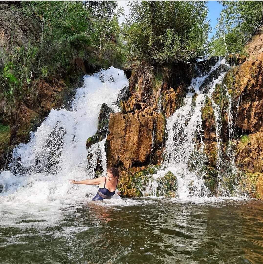 Что это там, вдалеке? Похоже на Вавилонское столпотворение...🤔 Так это же Беловский водопад - самый популярный водопад в области! 10 лет назад, когда мы приезжали сюда первый раз людей не было совсем. Сейчас их очень, очень много. К сожалению, соответственно, мусора тоже😖. Но сам водопад, по сравнению с нашим предыдущим - Медведским (Стеклянным), просто супер! Артюхе так понравилось там купаться, что он даже не собирался выходить. Зубы уже стучат, сам кричит: "Я трясусь", но уходить не хочет. 😅 Очень симпатичное место, окружённое живописным берёзовым лесом. Заводь около водопада с несколькими уровнями глубины, каждый имеет каменное обрамление. Дно в заводи тоже каменистое, камушки встречаются мелкие и часто острые. Мне было немного некомфортно. Вода прохладная, но не ледяная, как ожидалось и кажется прозрачной - видно маленьких рыбёшек 🐟 . Людей, повторюсь, очень много. Самое неприятное - это пьяные компании. Похожие на те, которые на всех видосах кричат: "Тагил", делая "козу", в