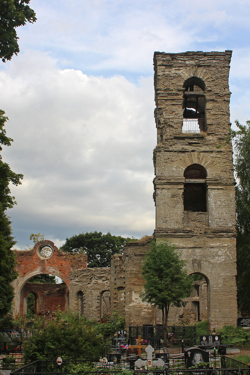 Руины этого придела можно увидеть на фотографии ниже. Эта часть здания сильно отличается от основной - она построена из красного кирпича. В то время как основная - из серого бутового камня. Различия видны невооружённым глазом.