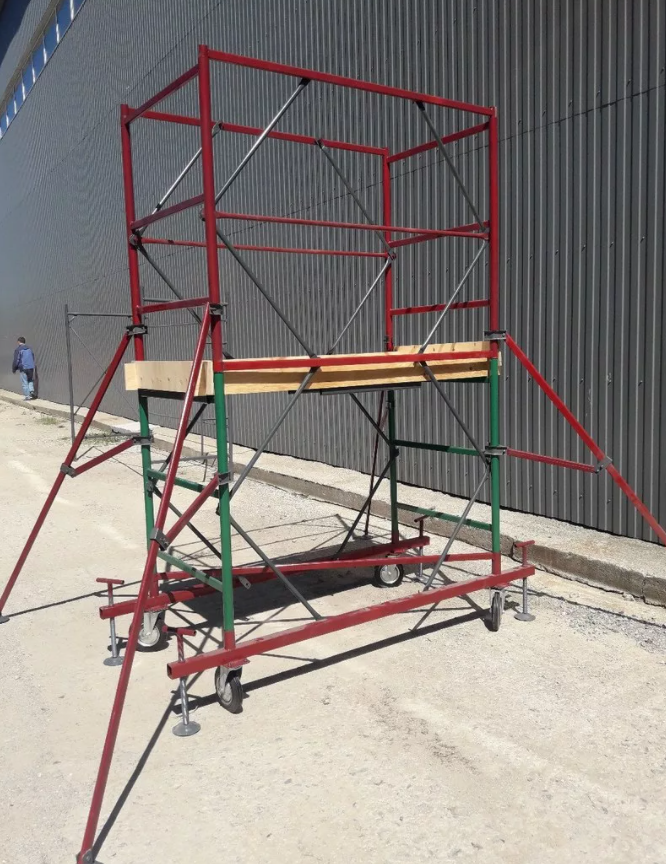 На сегодняшний день сфера строительства развивается очень динамично и все более актуальным становится вопрос обновления строительного оборудования и техники. Один из наиболее востребованных видов строительного оборудования – это стальные вышки туры. Они представляют собой сборно-разборную металлическую конструкцию башенного типа, которая имеет несколько рабочих уровней. Обычно такие вышки состоят их трубчатых рам, которые соединены между собой лестницами. Параллельные рамы крепятся специфическими горизонтальными элементами жесткости при помощи флажковых замков. На них уже устанавливаются последующие рамы по схеме «труба в трубу». Наконец, все элементы стягиваются стяжками, образующими отдельную секцию. Подобная технология позволяет обеспечить хорошую жесткость конструкции. Строительные леса могут быть установлены как снаружи здания, так и внутри помещений, имеющих высокие потолки. Обычно это производственные цеха, склады, и т.п. Большинство вышек тур являются передвижными. Они имеют че