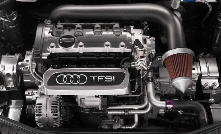 На первый взгляд, эта сложная аббревиатура расшифровывается достаточно просто – Turbo Fuel Stratified Injection. Двигатель был разработан на базе мотора FSI, одного из старых, проверенных временем силовых агрегатов VW. Конечно, двигатели очень похожи, однако с течением времени концерны, входящие в «Большую немецкую тройку», просто не могли оставить без изменений сердце автомобиля. Для TFSI, как и для его родоначальника, характерен непосредственный впрыск топлива в цилиндры, а вот в остальном новый движок отличается. Первое, что претерпело изменений, – поршни. Их днища изменили таким образом, чтобы мотор мог работать при низкой степени сжатия. Отличаются также и головки блока цилиндров, которые состоят из двух распределительных валов, сделанных из износостойкого материала. Подверглась изменениям и выпускная система. И все же главное отличие FSI и TFSI состоит именно в букве «T», обозначающей турбокомпрессор, за счет чего удалось усовершенствовать систему двойной обработки воздуха, что с