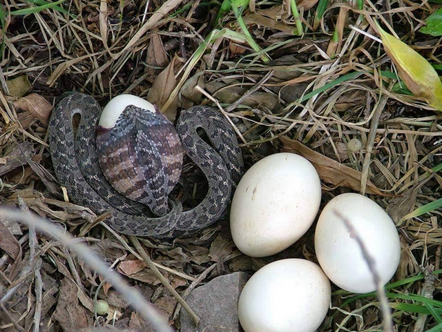 Свое название змея получила за особое пристрастие к яйцам, которые являются основой рациона. Яйцееды лишены зубов, поэтому любители экзотической живности часто содержат их у себя дома. Распространены яйцееды по всей территории Африки к югу от Сахары. Длина тела до 110 см. Эти змеи очень теплолюбивы, при малейшем похолодании они прячутся в убежище впадают в оцепенение. Ведут ночной образ жизни, весь день отдыхают, а с приходом сумерек отправляются на поиски пропитания. Африканские яйцееды отлично лазают по деревьям и на высоте находят птичьи гнезда. Обнаружив яйцо, змея прощупывает его языком и определяет свежесть. Питается только яйцами, в которых еще не сформирован эмбрион. Если именно такое попалось на обед, яйцеед открывает пасть и заглатывает яйцо с острого конца. Нижняя и верхняя челюсть не соединены между собой, что позволяет очень широко открывать пасть. Как уже было сказано, ядовитых зубов у змеи нет, но в челюстях есть специальные, похожие на гармошку, складки, которые п
