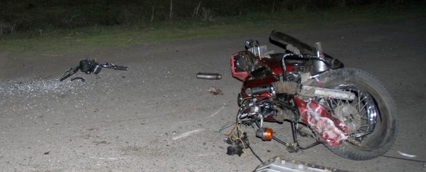 Дело было вечером, делать было нечего. Собрался я с друзьями на ночные покатушки, одел шлем с сандалями и поехал на все четыре стороны. Дорога не предвещала никакой беды, до поры до времени. В темноте светили фары, кроме нашего друга, назавем его Петя, так как у Пети была старая гнилая Ява, то о фагарях и речи быть не может. Устроили мы гонку, молодость заиграла, ктож знал, что появиться во время гонки ещё один мотоцикл. Петя ехал по встречке, в надежде обогнать соперника и придти первым, но врезался в другого мотоциклиста. ( парень лет 17, мото его либо Ява, либо Урал, уже не припомню) Оба живы , под конец успели затормозить, но лежат в больнице, на фото видно, что мото Пети лежит на встречке. Жаль парней, еслибы соблюдали правило и не пожалели деньги на фары, то такой ситуации не было бы. Не гоняйте ребят, жизнь у Вас одна!