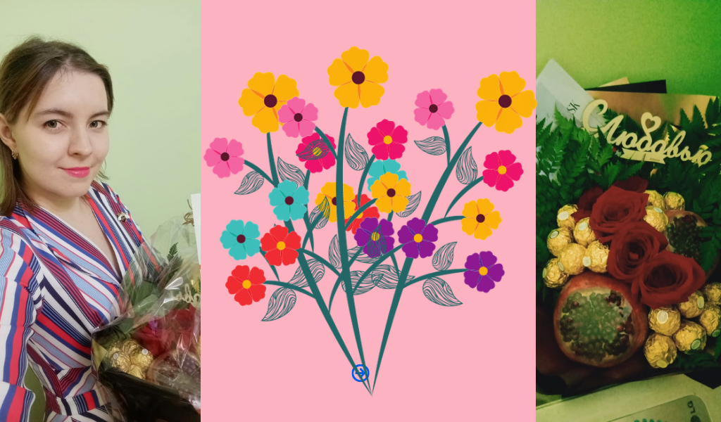 На мой 26 день рождения, курьер привез букет. Я не ожидала. Ведь муж и родители уже подарили утром. Близких друзей у меня мало. И мы не настолько общаемся, чтобы дарить подарки. Да и адрес они не знают. Представляете, какое у меня было лицо, когда я увидела огромный букет с цветами, конфетами и гранатами. От кого? Я даже и не подозревала. Особенно заинтересовались мои родители, который не переставали задаваться вопросом: "От кого?". Записка есть. Но написана чужим почерком. С днём рождения, Юлька. Судя по имени, этот человек меня знает. И даже очень хорошо. Надо было спросить у курьера. Но я растерялась. Да ещё и выбежала, как сумасшедшая, в чем была. Растрёпанная. После 4 часов приготовления блюд на кухне. На голове неизвестно что. От неожиданности я забыла спросить. Мама и бабушка не давали покоя. От кого? Мы чего-то не знаем? Может, от поклонника? Да, конечно. Откуда у меня поклонники, если я все время сижу дома с детьми? Загадка. Я ушла одеваться, а мама с бабушкой разгадывали