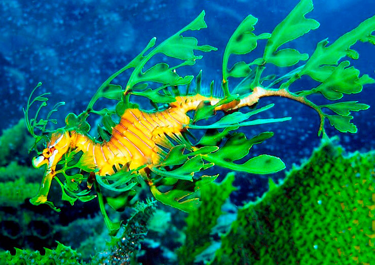 Морской конёк тряпочник вырастает до 30 сантиметров в длину. Данный морской обитатель примечателен своим внешним видом, всё их тело в плоть до головы покрыто необычными отростками. Несмотря на схожесть данных отростков с плавниками, они предназначены для маскировки от хищников. А передвигаются данные особи с помощью прозрачных, ели заметных плавников на спине и груди. Плавают достаточно медленно, со скоростью до 150 м/ч. Обитают они в индийском океане у берегов юго-западной Австралии, а так же Тасмании на глубине от 4 до 30 метров. Питаются данные рыбы водорослями и планктонами, но поскольку они не имеют зубов, глатают пищу целиком.