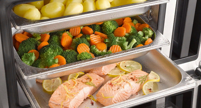 УХА, ГАРНИРЫ И ЛАВРАК ОБЫКНОВЕННЫЙ — ВАРИАЦИИ ДЛЯ ПЛОТНОГО УЖИНА С ЛУЧШИМИ ДРУЗЬЯМИ Из всех способов приготовления еды самым гуманным справедливо считается на пару. Продукты в этом случае не теряют в полезных свойствах, приобретают совершенно картинную сочность, да и на организм такая еда оказывает на редкость благоприятное действие. Неудивительно, что одним из самых популярных кухонных гаджетов наших дней стала пароварка. Помимо перечисленных выше преимуществ не стоит забывать и про удобство и легкость готовки — пароварка довольно терпима к возможным ошибкам на кухне, помогает экономить время и место, а что до объемов исходных порций, то тут можно за один раз с легкостью приготовить сет на шестерых. Hапример, встраиваемая комбипароварка Miele DGC 6600 XL из серии Generation 6000 оснащена рабочей камерой объемом в 48 литров, способна чередовать пропаривание и конвекцию горячим воздухом (что чаще можно встретить на кухнях ресторанов, нежели на обычных), а при желании легко превращается