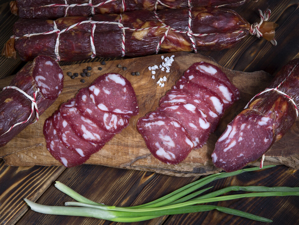 Решили побаловать себя сырокопченой колбасой, пошел в ближайший сетевой магазин, выбор аж глаза разбегаются так сказать на любой вкус и кошелек.Ни когда особо состав не читал а тут решил глянуть что же туда положили,увиденное вызвало крайнее не довольство потому что в колбасе по 1000р. за кг мяса не оказалось,а было там! Давайте сначала расскажу что должно быть по ГОСТу: Состав сырокопченой колбасы регулируется ГОСТом 16131-86, в соответствии с которым в этом продукте могут присутствовать следующие ингредиенты: говядина, свиной шпик, нитритная соль, сахар, перец белый и красный, чеснок и другие пряности. Кроме говядины в составе сырокопченой колбасы нередко используются и другие виды мяса – свинина или конина. Нередко дополнительно добавляется коньяк, который придает готовому мясному изделия тонкий аромат и изысканность. Судя по выше сказанному там был только аромат и так сотав: То есть ГОСТом там и не пахнет,взял почитать колбасу за 1800р.кг. примерно тоже самое только вместо