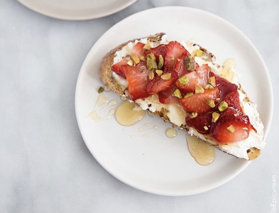 Рецепт сладких брускетта с рикоттой и клубникой (Не ПП, но вкусно)