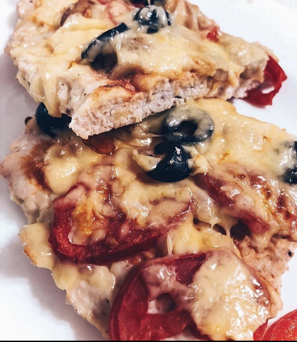 ФИТНЕС ПИЦЦА ИЛИ ПИЦЦА, КОТОРУЮ МОЖНО НА НОЧЬ ⠀ ⠀ КБЖУ на 100 грамм - 85/10/4/1,5 Общий вес продукта - 1000 г. ⠀ Ингредиенты: Для основы: - 300 гр куриного филе - 1 яйцо - соль/перец по вкусу ⠀ Приготовление основы: Из куриного филе делаем фарш, добавляем яйцо, соль и перец.Все перемешиваем. Выкладываем тонким слоем на противень, делаем любую форму. Отправляем в духовку на 10-15 мин. ⠀ Для начинки: - 100 гр шампиньонов - 2 маленьких помидора - 70 гр легкого твёрдого сыра - 7 шт маслин - 1 ст л сметаны - 1 ст л томатной пасты ⠀ Приготовление начинки: Смазываем основу пиццы сметаной, потом томатной пастой. Тонко режем овощи и по очереди выкладываем на пиццу. Сыр трём на тёрке и сверху посыпаем. С начинкой можно импровизировать, можно сделать с морепродуктами, в общем кто как любит. Ставим в духовку на 20 минут. Готово! ⠀ Приятного аппетита!