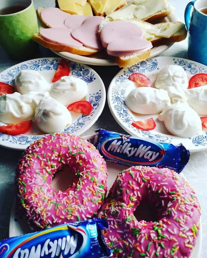 #Суровыйповар #самсебеповар #готовимдома #сдобрымутром #бутерброды #милкивей #шоколадка #яйцопофранцузски #сыр #колбасасосиска
